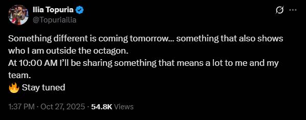 დილის 10 საათზე გაგიზიარებთ რაღაცას, რაც ჩემთვის და ჩემი გუნდისთვის ძალიან ბევრს ნიშნავს. დაელოდეთ." - წერს UFC-ის ქართველი ჩემპიონი.