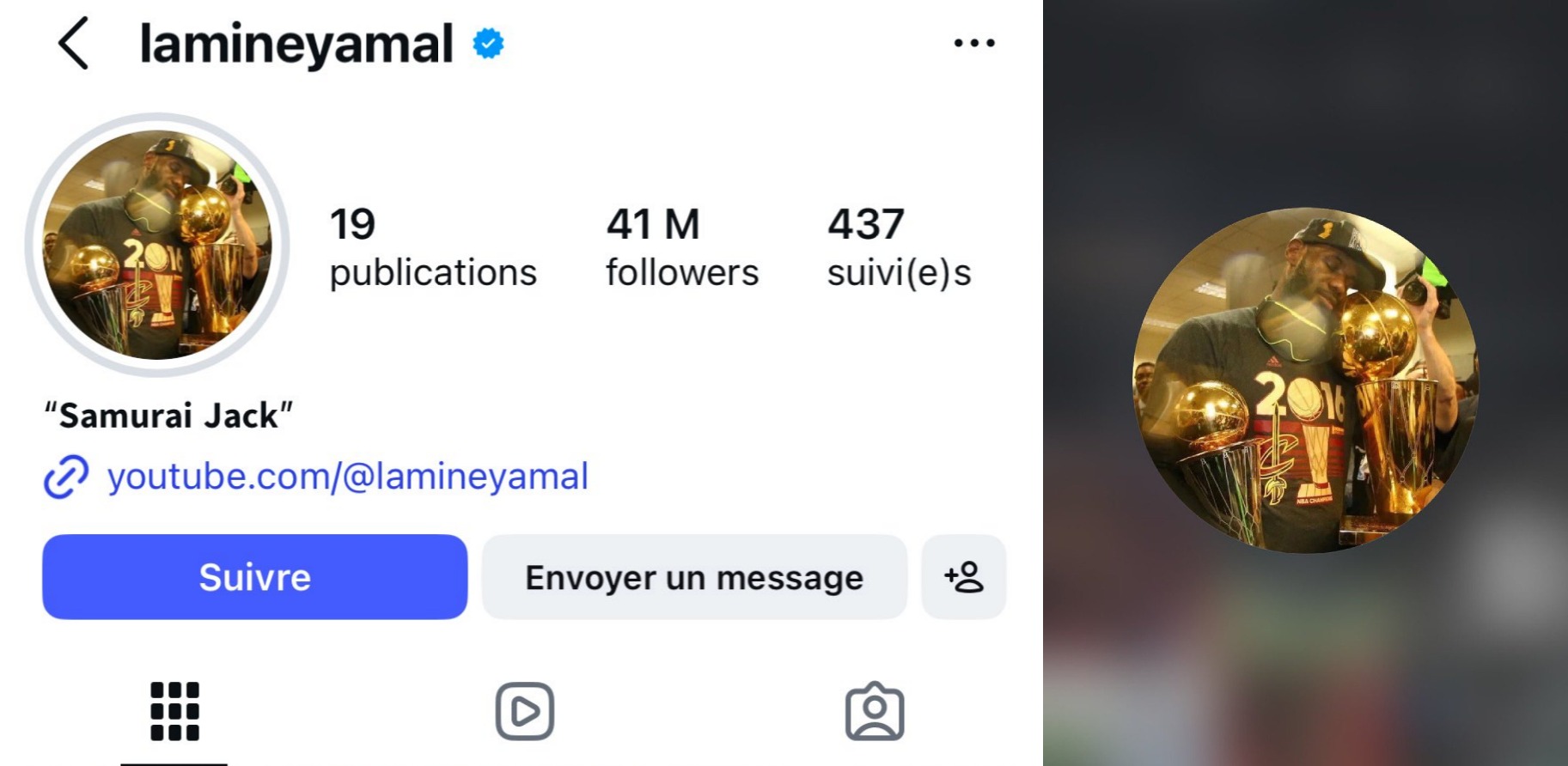 იამალის ეს ქმედება ბარსელონას გულშემატკივრების ტრენდს მოჰყვა, რომლებიც X-ზე თავიანთ პროფილის ფოტოებს ფეხბურთელების იმ სურათებით ცვლიან, რომელიც ლებრონ ჯეიმსის ცნობილი ფოტოს ალუზიაა.