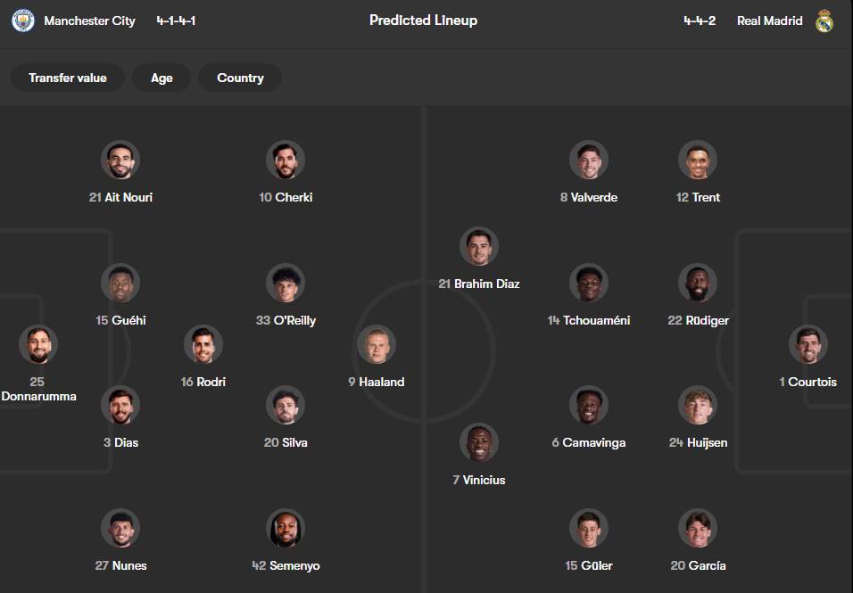რეალი: კურტუა, ტრენტი, რუდიგერი, ჰაუსენი, ფრან გარსია, ჩუამენი, კამავინგა, გიულერი, ვალვერდე, ბრაჰიმი, ვინისიუსი.