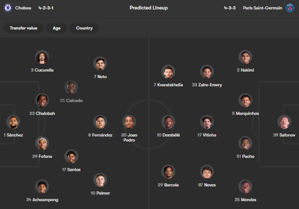 ჩელსი: სანჩესი, აჩემპონგი, ფოფანა, ჩალობა, კუკურელია, კაისედო, სანტოსი, ენცო, პალმერი, ნეტუ, ჟოაო პედრო