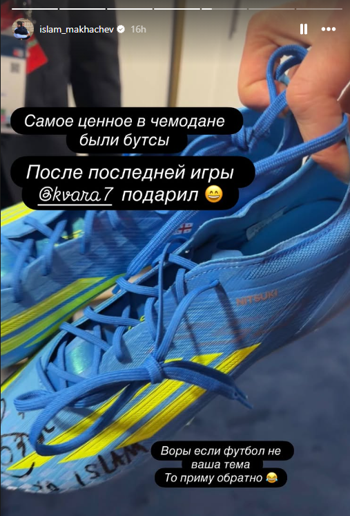 მახაჩევს ასევე ხვიჩა კვარაცხელიას ნაჩუქარი ბუცები მოპარეს, რომლებიც ქართველს პსჟ – ლივერპულის მატჩში ეცვა და ეს ბუცები ახლა ქურდების ხელშია.