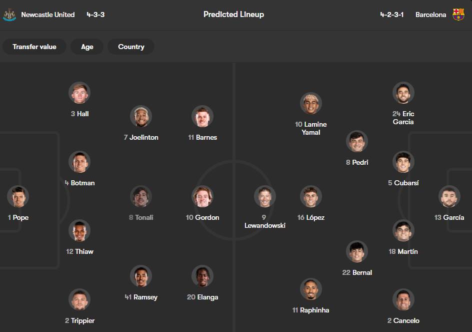 ბარსელონა: ჟოან გარსია, ერიკ გარსია, კუბარსი, მარტინი, კანსელუ, ბერნალი, პედრი, ლოპესი, რაფინია, იამალი, ლევანდოვსკი.