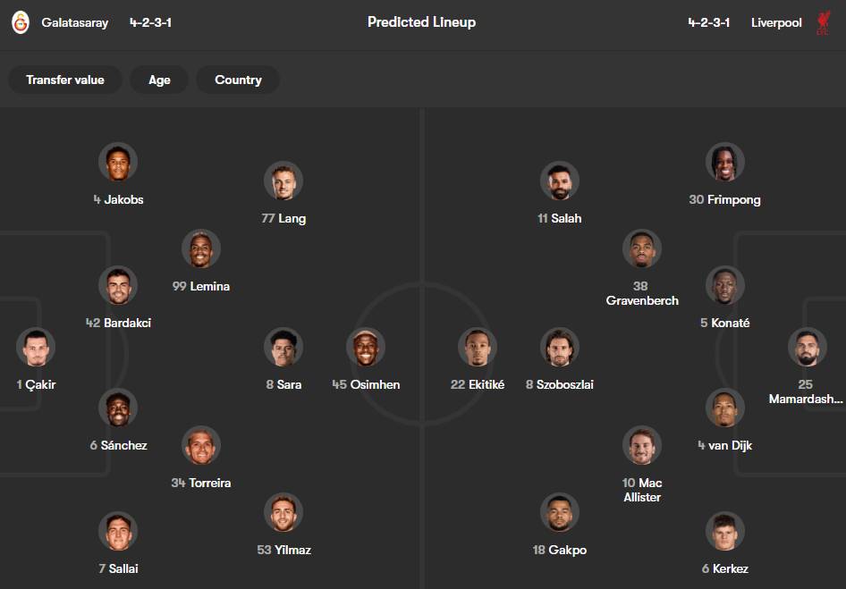 ლივერპული: მამარდაშვილი, ფრიმპონგი, კონატე, ვან დაიკი, კერკეზი, გრავენბერხი, მაკ ალისტერი, სობოსლაი, გაკპო, სალაჰი, ეკიტიკე.