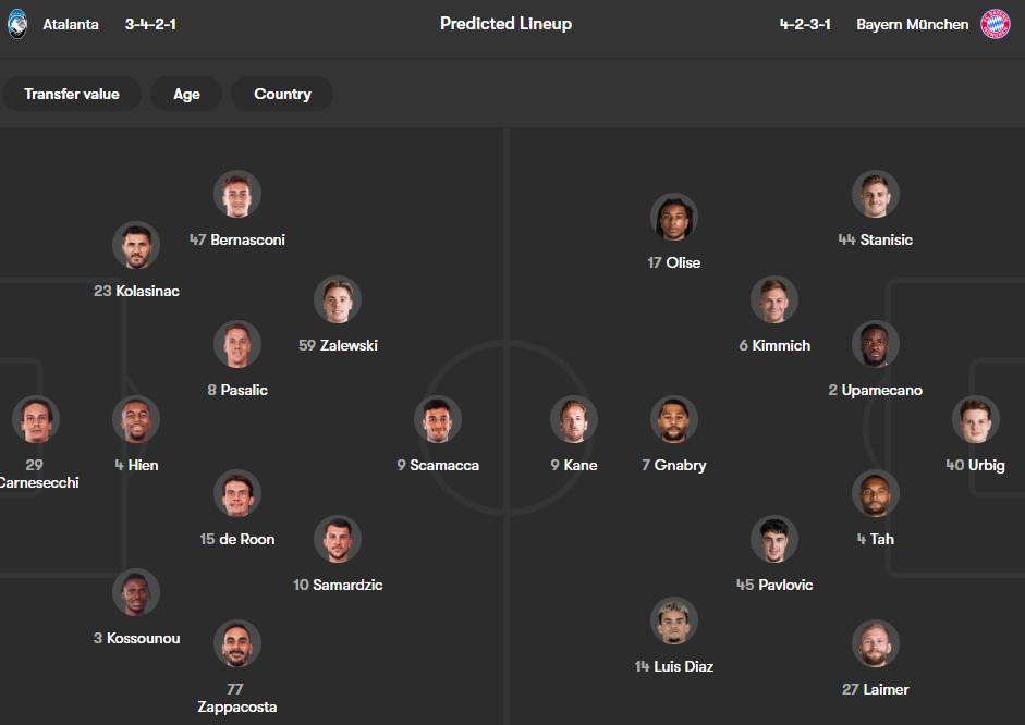 1/16 ფინალურ ეტაპზე ატალანტამ ერთი სენსაცია უკვე დააფიქსირა. პირველი მატჩის დორტმუნდში 0:2 წაგების შემდეგ, გუნდმა საკუთარ მოედანზე ბოლო წამებზე გატანილი გადამწყვეტი გოლით 4:1 მოიგო და შემდეგ ეტაპზე მოულოდნელად შეძლო გასვლა. თუმცა, დიდი ალბაბოთი, აქ ბერგამოული მოგზაურობა წლევანდელ ლიგაზე დასრულდება, რადგან მეტოქედ მთავარი გერმანული გიგანტი და შესანიშნავ ფორმაში მყოფი ბაიერნი ჰყავს, რომელმაც ლიგის ფაზაც მე-2 ადგილზე დაასრულა და ზოგადად ტურნირის ერთ-ერთ მთავარ ფავორიტადაც მოიაზრება.