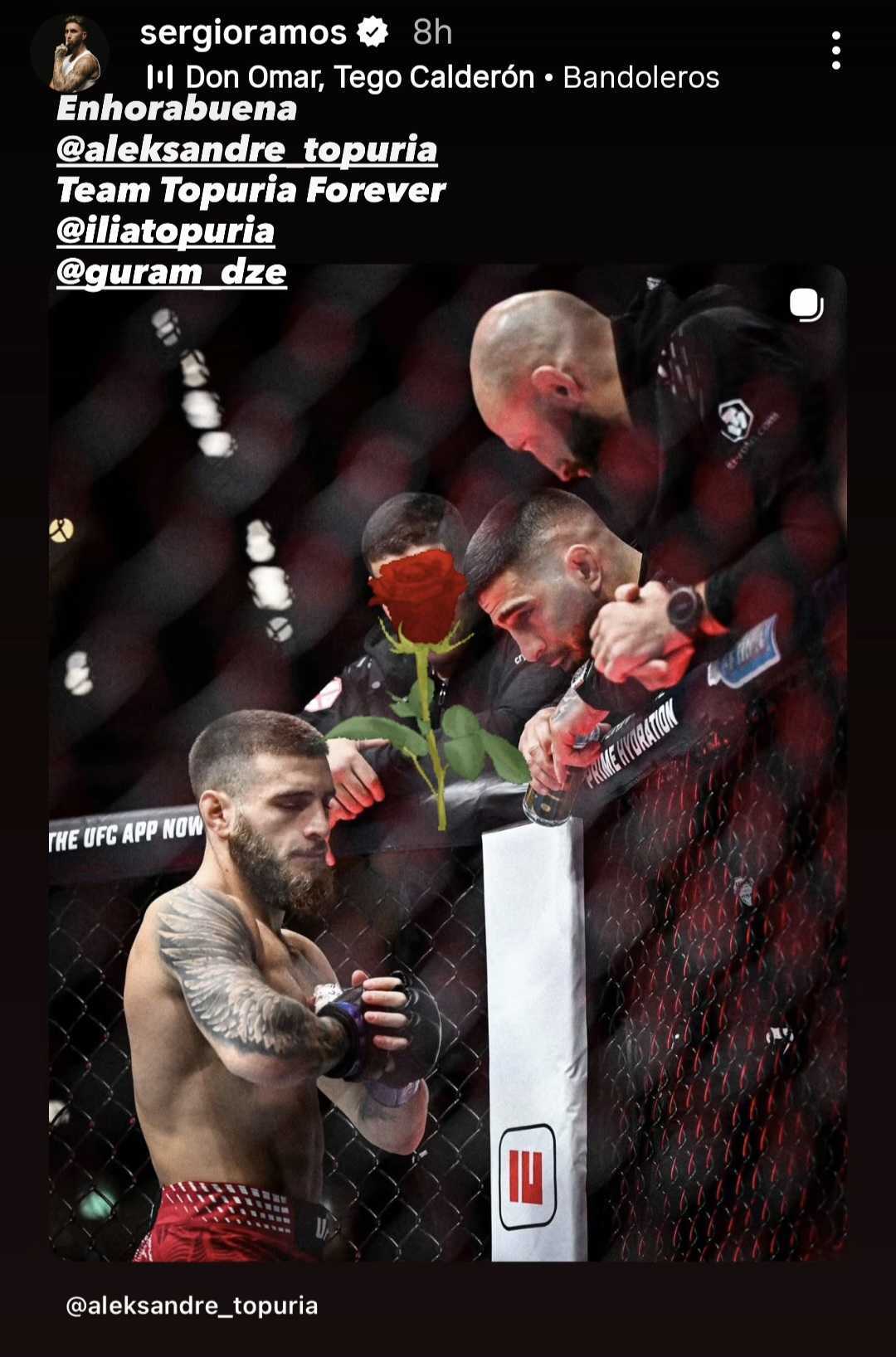 "გილოცავ, ალექსანდრე. Team Topuria Forever (თოფურიების გუნდი ყოველთვის)."